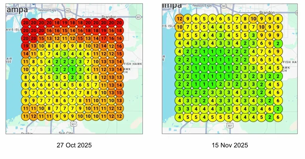 We went from invisible on Google Maps to ranking in the top 3 across most of the Tampa Bay area